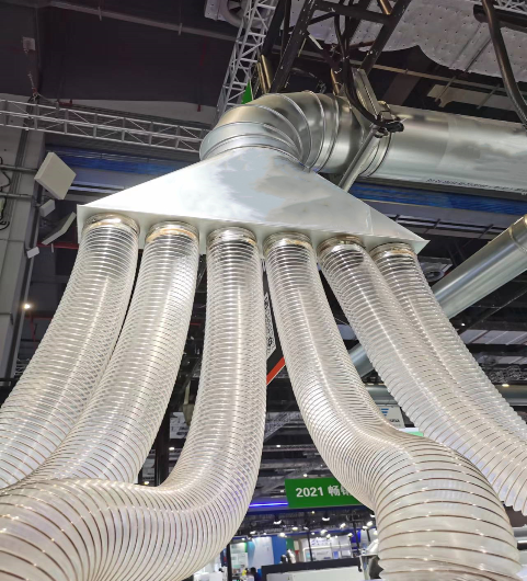 木工车间CNC加工中心吸尘软管通常用于连接CNC加工中心上的吸尘设备,用于吸收加工过程中产生的木屑和粉尘,以保证操作安全和车间环境卫生。这些软管需要具有耐磨损、耐腐蚀、防静电等特性,以保证其长期使用的稳定性和安全性。