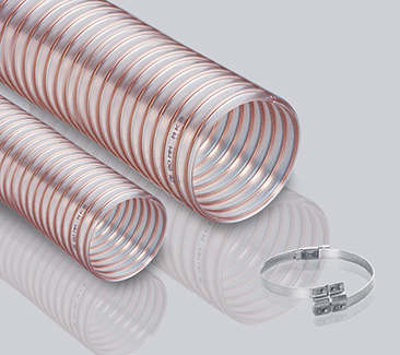 颜色:半透明PU(聚醚型聚氨酯)管壁,带螺旋状镀铜钢丝加强